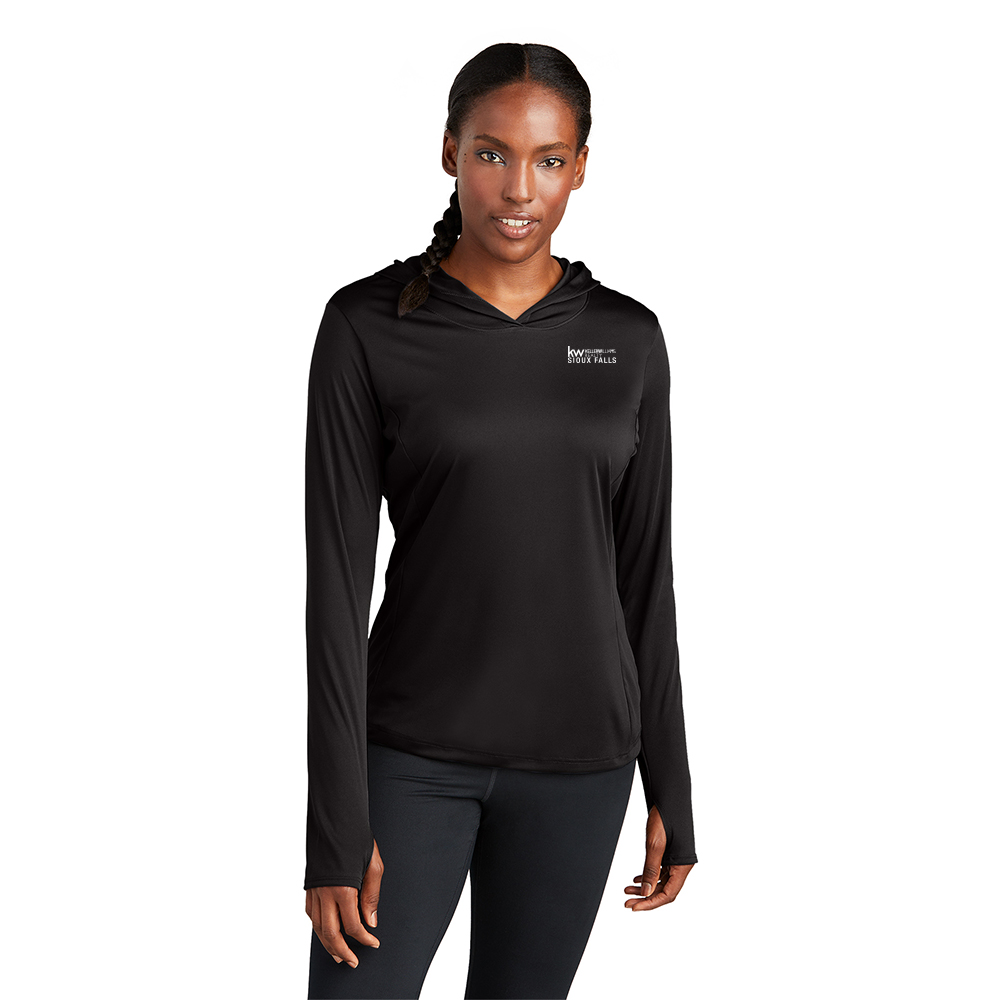 This lightweight hooded pullover locks in color and wicks moisture. It’s versatile enough for year-round wear.